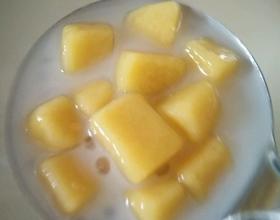 然后把宇圆捞出就可以加入椰子奶和西米,喜欢吃水果也可以加入水果,然后想吃冰的可以放进冰箱冷藏哦!