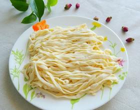 来回对折时必须多撒面粉,防止粘连。煮面条时抖去干面粉。