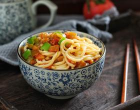 食材分量约为两人份,面条最好选择手擀面,比较有韧性,口感好 汤汁不要收的太干,煮好的面条也可以过凉水后再拌上酱汁