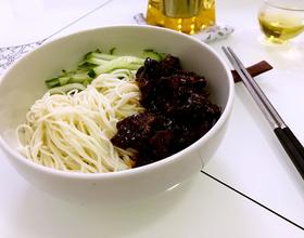 - 7. 先装面,然后放黄瓜,牛肉粒挑入碗里,吃的时候拌匀即可