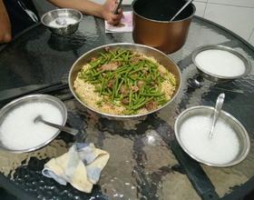热锅,蒜头拍扁,瘦肉适量,翻炒