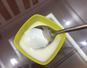 将融化的吉利丁液倒入温椰奶中,搅拌均匀