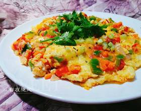 所需食材 蔬菜切丁 鸡蛋打散成蛋液 加入适量盐和胡椒粉