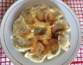 翻个面吧,装盘的效果!煎饺看玉米面的金黄色