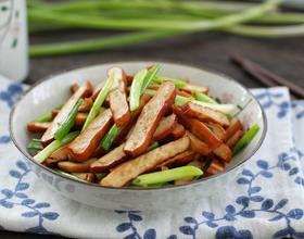 最后放入小葱后炒匀立即关火,否则小葱会蔫掉