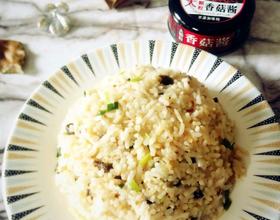 最后加入2勺香菇酱炒匀,简单、美味的葱香香菇酱炒饭炒好啦。