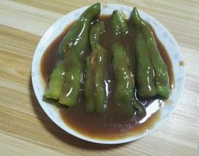 - 4. 煎。锅中放适量油,将尖椒放入锅中煎至虎皮,然后换另一面煎至虎皮。