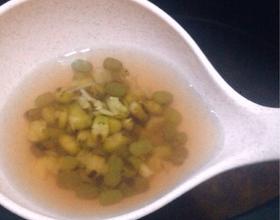 煲里烧开水。倒入洗净的绿豆。转小火慢炖