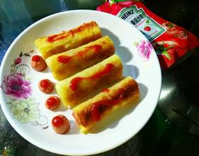 可以在擀平的土司上事先抹层果酱,然后再卷入火腿肠……