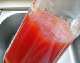 将搅拌好的番茄汁放无油的锅慢火熬制,放入少许冰糖