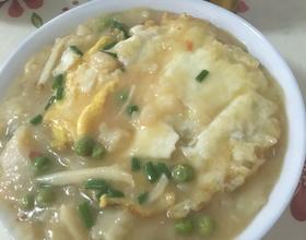 - 7. 煮至麦虾熟后放入煎好的荷包蛋和葱花,煮一下,出锅