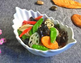1.莲藕选择新鲜白嫩的,既漂亮又鲜脆2.辣椒根据喜好选择相应的品种3.荷兰豆要先用开水焯至断生,这样炒制的时候就比较快,避免炒久了莲藕变色4.整个炒制过程要快,炒菜的锅一定要洗干净,不然焯出来的菜品色彩就不漂亮了