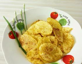 - 8. 炸至翻动有脆响,呈金黄色捞出,再加入另一半土豆片炸。沥干油,放入大盘里