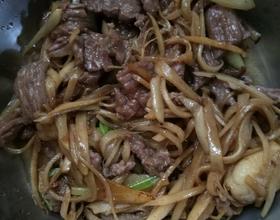 牛肉切片,用盐,料酒,老姜丝,葱头,生抽腌制,大概15分钟就可以了