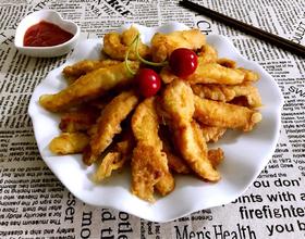 锅里转小火,用筷子将鸡柳一根根放入锅中
