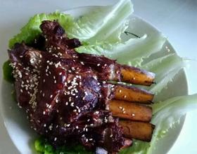 - 5. 煮熟的羊排放架子上,羊排距离水面3厘米以上(糖会冒泡)。