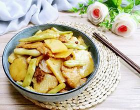 - 1. 五花肉切片,芸豆摘掉丝,洗净切段,土豆去皮切厚片,葱姜切沫