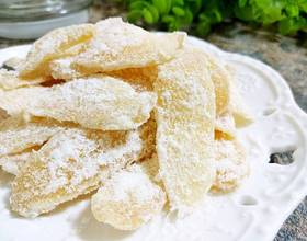 搅拌至糖浆变凉后成白色糖粉,姜片上均匀沾上即可