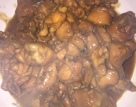 - 4. 倒入调味的鸡块,翻炒至鸡肉变金黄色。加入一点鸡精。