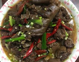 加入麂子肉进去爆炒5分钟,加入酱油,辣椒