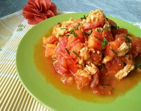 鸡蛋一成形就放番茄。炒到番茄有点融了就放盐起锅。
