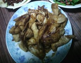 放入适量油,油温5成时,放入豆翅。爆炒