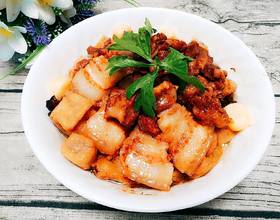 盖上锅盖,开锅后转中小火慢炖40~50分钟(具体时间自己控制,炖至五花肉软烂即可)。