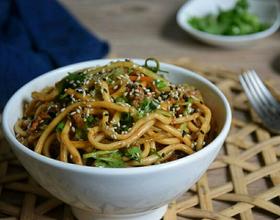 - 11. 面条加入青瓜丝、香菜和葱花拌匀