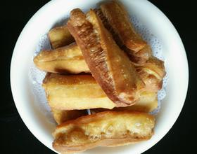 - 3. 锅中放入油,加热至6、7成热时放入做好的面,待它自己慢慢漂起,炸成金黄色,捞出控油