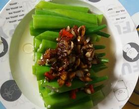 - 1. 秋葵清洗干净,切去头尾,大蒜拍扁剁成蒜粒。