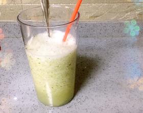 料理棒插电放入料理盆中开始打果汁,为了保护机器的长久使用,频率是打三秒停一下!需要注意的是盆真的有点浅的,打果汁会四溅……后来还是倒入深料理杯中继续打。