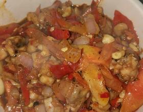 - 4. 炒锅放油烧热放牛蛙炒至八成熟盛出备用