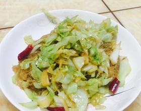 放洋白菜、酱油,再放一些辣椒,放粉丝,最后放盐和蚝油