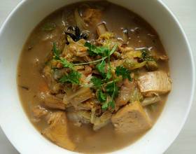 - 9. 放入切好的豆腐块,小火慢炖,待汤汁粘稠时放入盐,轻轻翻炒几下出锅即可