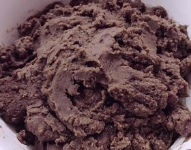 打好的红豆沙放入不粘锅,加入红糖和食用油,可以一次性加入也可以分几次加入