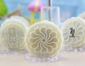 把包好的面团放入月饼模,扣下、按压月饼形状取出就可以了。