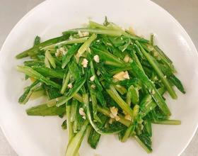 下蒜蓉,下油麦菜,调味,翻炒均匀。