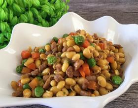 - 8. 待汤汁浓稠时倒入豌豆,胡萝卜,调入盐,鸡精调味。