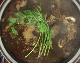- 4. 放入香叶 花椒 小茴香 桂皮 姜片 葱段 放入羊蝎子 加水 放入豆腐乳 老抽 生抽 味精 鸡精 炖至羊蝎子软烂~