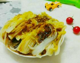粉丝娃娃菜摆好装盘放蒸锅备用。
