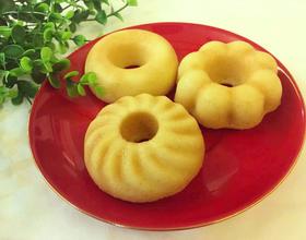 将蛋糕糊一半装入裱花袋,再慢慢地挤入模具凹槽里,约七八分满。(此配方可做12个蛋糕圈,因家里烤箱太小,一次只能烤6个) 12、