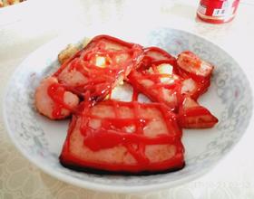 午餐肉切片,不要太薄,将近1cm,也不要太厚,不容易煎熟。