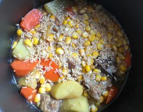 -  一根排骨、一个土豆、一根胡萝卜、一根玉米,大米适量(看要煮几人份哈)