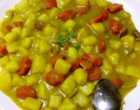 咖喱土豆的做法超级简单方便,咖喱土豆不宜过稀过稠,煮的时候可以适当多加点水,防止太稠,如果有点稀就小火多煮一会儿
