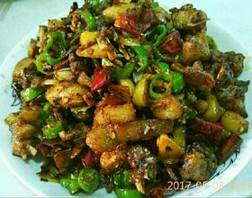 - 13. 炒到兔丁吸收配料的味道,下二荆条。
