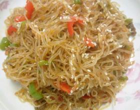 下肉,拌料,下粉丝翻炒,加一碗水,