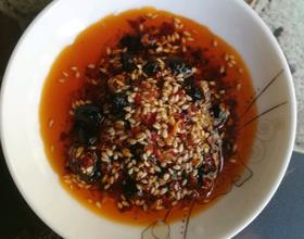 - 2. 锅热下油,要小火热油,热到油在锅七成热,先小匙小匙放然后才量多倒进去,一会辣椒油的颜色就出来了,然后锅留小小油把洗干净的豆豉、白芝麻、盐放到锅小火爆片刻,再装到刚才辣椒油的碗里。