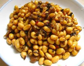 热锅下油,然后放进姜蒜末爆炒,接着把其他的配料也倒进去爆炒,最后放进黄豆,撒一点盐,糖,酱油就OK拉。