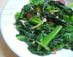就是下油,加蒜头,姜片,辣椒。接着倒入蜗居叶子翻炒,最后撒盐就可以上碟了。