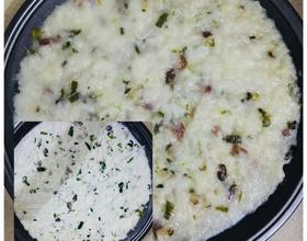 在步骤一的白萝卜汁加入250g左右粘米粉和在一起,加入适量盐调味,稍加粘稠。